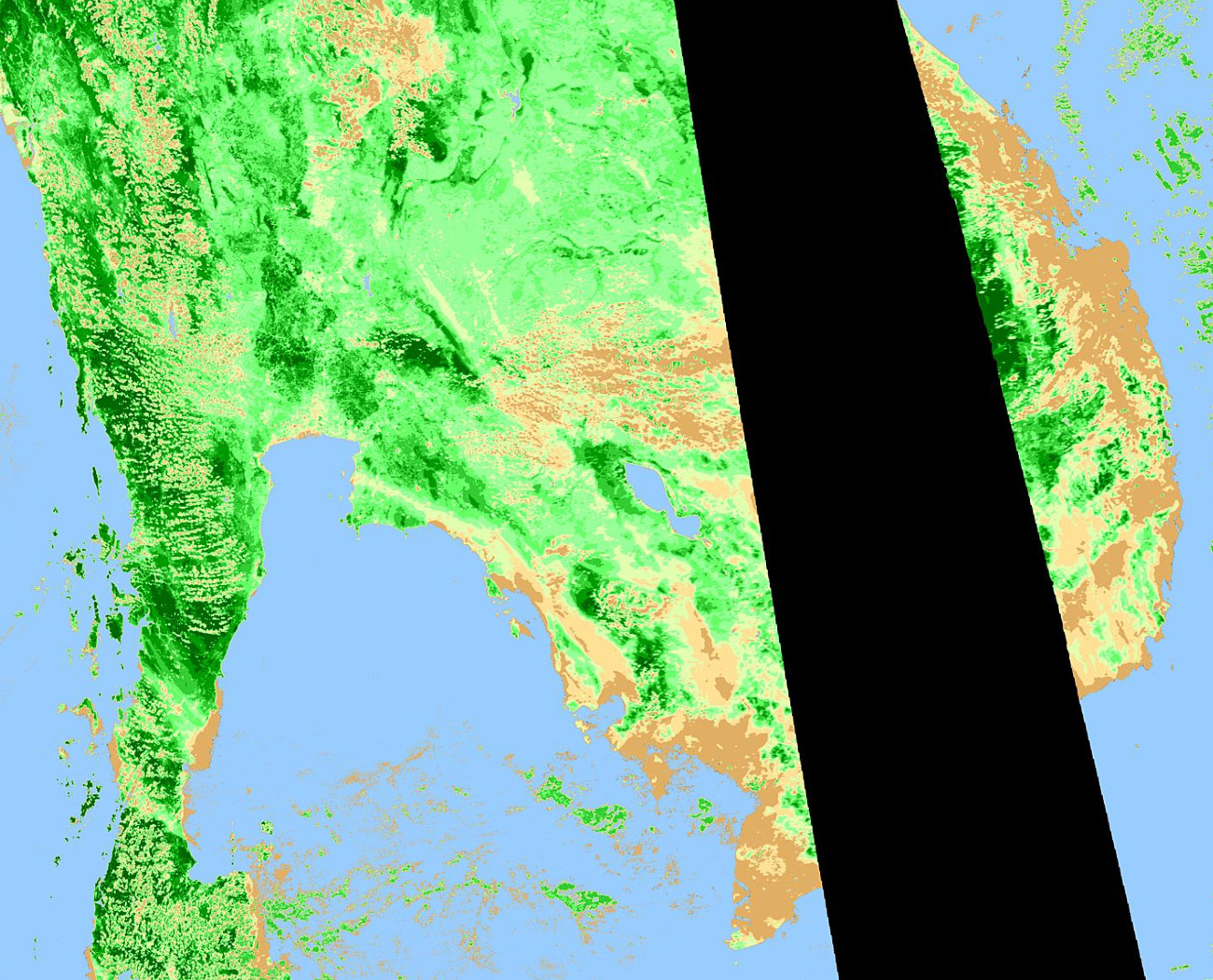 * สีแดงคือจุดที่มีโอกาสเกิดเกิดไฟป่า