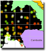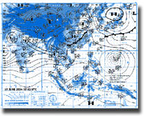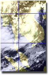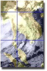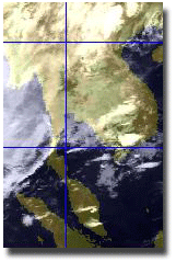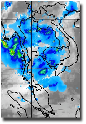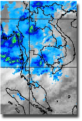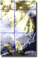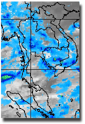 | ดูรายละเอียดเพิ่มเติม ภาพถ่ายจากดาวเทียม GOES-9 เพื่อติดตามสภาพอากาศ พบว่ากลางเดือนมิถุนายน โดยเฉพาะช่วงวันที่ 13-16 มีกลุ่มเมฆปกคลุมในบริเวณประเทศไทย บริเวณภาคตะวันออกเฉียงเหนือและภาคเหนือตอนล่าง ทำให้เกิดฝนตกหนักในพื้นที่ดังกล่าว |