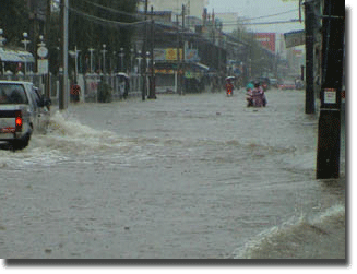 ถ.ศรีมาลา ถ.ธิตะจารี ถ.บุษบา ถ.ราษฎร์อุทิศ และตลาดสดเทศบาล 2 ถูกน้ำท่วมอย่างฉับพลัน