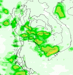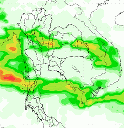 3. ช่วงวันที่ 19-20 ก.ย. 56 เป็นกลุ่มเมฆค่อนข้างหนาบริเวณภาคกลางที่เกิดจากการสลายตัวของพายุดีเปรสชั่น Eighteen