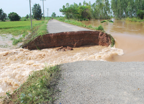 ขณะที่ ต.หนองไผ่แบน ต.เนินแจง อ.เมือง คันดินริมแม่น้ำตากแดดพังลง ส่งผลให้น้ำท่วมนาข้าวเสียหายสิ้นเชิงนับหมื่นไร่ และระดับน้ำยังเพิ่มขึ้นอย่างต่อเนื่อง เนื่องจากยังระบายน้ำออกจากจากเขื่อนวังร่มเกล้า