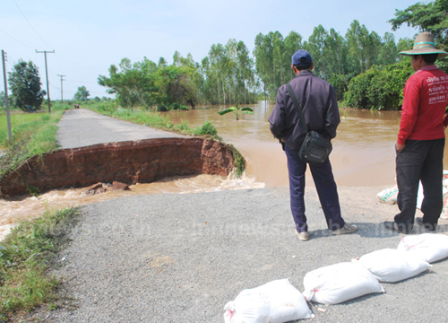 กระแสน้ำจากแม่น้ำวังทอง จ.พิษณุโลก ซัดถนนขาดเพิ่มอีกเส้นทาง ทำน้ำทะลักท่วมนาข้าว ขณะที่ทหารเร่งซ่อมพนังกั้นน้ำที่แตก