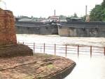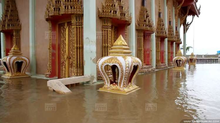 พบว่าวันนี้ระดับน้ำสูงขึ้น และไหลแรงจนล้นแนวกระสอบทราย และไหลเข้าท่วมโบราณสถานแล้ว โดยระดับน้ำมีความสูงประมาณ 5-10 ซม. บางจุดลึกถึง 20-30 ซม. รวมทั้งขณะที่เรือบรรทุกสินค้า เรือนักท่องเที่ยวที่วิ่งได้ส่งผลให้คลื่นกระทบเข้าตัวโบราณสถานอยู่ตลอด เวลาด้วย ทำให้หลายฝ่ายเกิดความหวั่นวิตกว่า โบราณสถานจะได้รับความเสียหายเนื่องจากน้ำที่ท่วมสูงขึ้นยังไม่มีการสร้าง แนวป้องกันคลื่นแต่อย่างไร