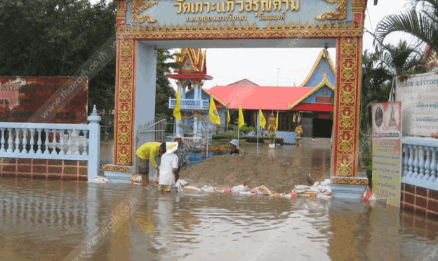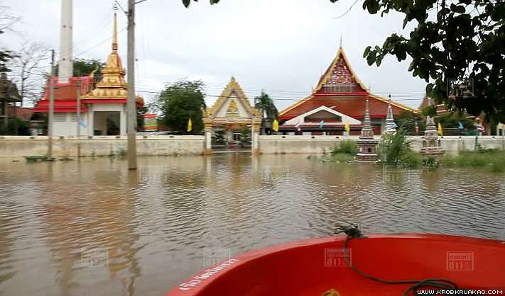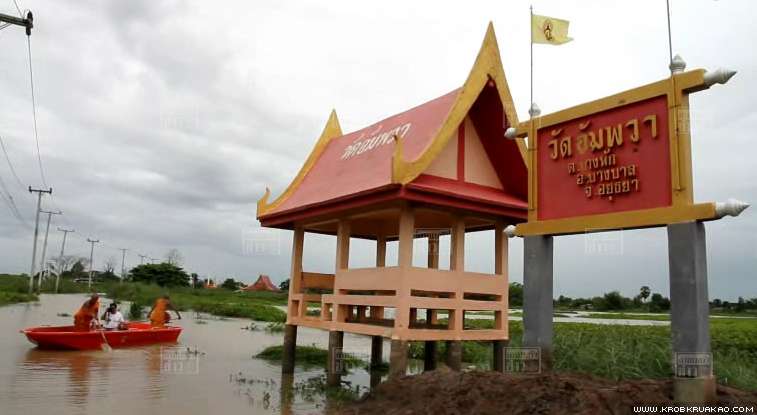น้ำเจ้าพระยาเอ่อล้นเข้าท่วมโบสถ์วัดอัมพวา ต.บางหัก อ.บางบาล จ.อุยธยา ระดับน้ำสูงกว่า 1.50 เมตร ขณะที่วัดธรรมาราม โบราณสถาน ใน ต.บ้านป้อม ติดตั้งแนวกระสอบทรายสำเร็จ จนสามารถป้องกันน้ำท่วมไว้ได้