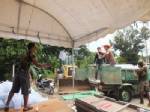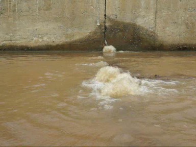ทั้งนี้ จากการตรวจสอบพบว่าบางจุดนอกจากจะมีน้ำไหลทะลุพนังคอนกรีตแล้ว บริเวณพื้นด้านล่างยังมีน้ำผุดใต้ดินออกมาอีกเป็นจำนวนมาก ขณะนี้ระดับน้ำในแม่น้ำเจ้าพระยาด้านนอกสูงกว่าแนวตลิ่งถึง 1.5 เมตร ซึ่งจากการสอบถามไปยังเทศบาลตำบลป่าโมก เจ้าของพื้นที่พบว่า ได้ลงไปตรวจสอบแล้ว แต่ต้องปล่อยให้น้ำไหลเช่นนั้น และใช้วิธีตั้งเครื่องสูบน้ำขนาดใหญ่สูบน้ำออกแทนเพราะหากไปปิดไว้จะทำให้ พนัง และพื้นคอนกรีตอาจจะระเบิดได้ นอกจากนี้ ยังจัดเจ้าหน้าที่เฝ้าดูแลตลอด 24 ชั่วโมงอีกด้วย
