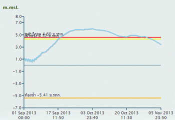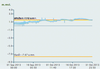 นายอดิศักดิ์ กล่าวต่อว่า สำหรับระดับแม่น้ำเจ้าพระยาในวันนี้วัดเมื่อเวลา 05.00 น. มีความสูงอยู่ที่ 1.49 ม.รทก. แต่คาดว่าในเวลา 15.15 น. น้ำทะเลจะหนุนสูงมากขึ้นโดยคาดว่าอาจสูงถึง 2 เมตร จึงต้องมีการเฝ้าตอดตามสถานการณ์น้ำตลอดทั้งวัน