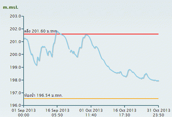 2.พายุไต้ฝุ่น "นารี" (NARI) ก่อตัวบริเวณมหาสมุทรแปซิฟิก และได้เคลื่อนขึ้นฝั่งบริเวณชายฝั่งเมืองดานัง ประเทศเวียดนาม ในวันที่ 15 ต.ค. 56 หลังจากนั้นได้อ่อนกำลังลงเป็นพายุโซนร้อนและเป็นพายุดีเปรสชันในวันเดียวกัน ขณะเคลื่อนตัวผ่านตอนล่างของประเทศลาว จากนั้นได้อ่อนกาลังลงอีกเป็นหย่อมความกดอากาศต่ำกาลังแรงก่อนเคลื่อนเข้าปกคลุมประเทศไทยในพื้นที่ภาคตะวันออกเฉียงเหนือตอนล่างบริเวณจังหวัดขอนแก่น ชัยภูมิ นครราชสีมา บุรีรัมย์ และมหาสารคาม ส่งผลให้เกิดฝนตกหนักในพื้นที่ภาคตะวันออกเฉียงเหนือตอนกลางและตอนล่าง รวมถึงภาคตะวันออก บริเวณจังหวัดขอนแก่น ชัยภูมิ นครราชสีมา บุรีรัมย์ มหาสารคาม สระแก้ว ปราจีนบุรี ฉะเชิงเทรา และชลบุรี ในช่วงวันที่ 15-17 ต.ค. 56 หลังจากนั้นหย่อมความกดอากาศต่ำดังกล่าวได้เคลื่อนตัวไปทางทิศตะวันตกและเข้าปกคลุมภาคเหนือตอนล่าง ส่งผลให้มีฝนเพิ่มขึ้นในพื้นที่ภาคเหนือตอนล่างและภาคกลางตอนบนบริเวณจังหวัด แม่ฮ่องสอน เชียงใหม่ ตาก กำแพงเพชร นครสวรรค์ อุทัยธานี และกาญจนบุรี ในช่วงวันที่ 17-18 ต.ค. 56