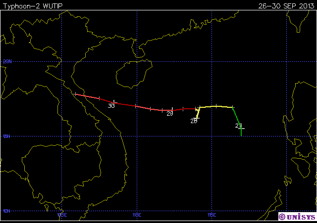 6.พายุไต้ฝุ่น "หวู่ติ๊บ" (Typhoon-2 WUTIP) ก่อตัวเป็นพายุเมื่อวันที่ 26 ก.ย. 56 และสลายตัวประมาณวันที่ 30 ก.ย. 56