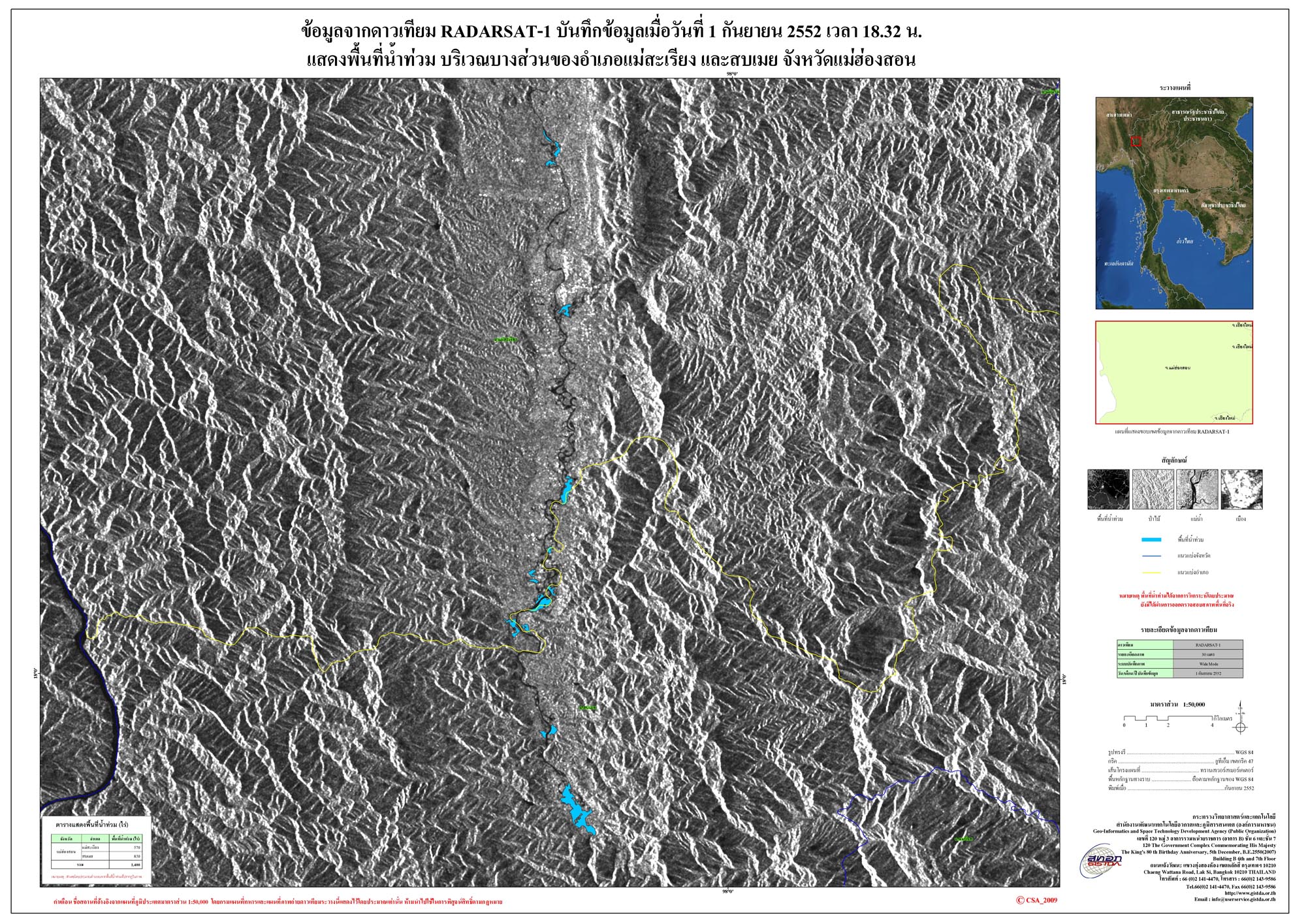 จากภาพถ่ายดาวเทียม GOES-9 พบว่าในช่วงวันที่ 31 ส.ค. ถึง 1 ก.ย. บริเวณภาคเหนือด้านทิศตะวันตกมีกลุ่มเมฆปกคลุมอย่างต่อเนื่อง โดยเฉพาะช่วงค่ำของวันที่ 31 ส.ค. เป็นต้นมาจนถึงวันที่ 1 ส.ค. ที่มีกลุ่มเมฆค่อนข้างหนา ทำให้เกิดฝนตกหนักในหลายพื้นที่ และเกิดน้ำท่วมบริเวณอำเภอแม่สะเรียง