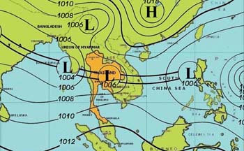 รายงานจากภาพแผนที่อากาศของกรมอุตุนิยมวิทยา พบว่า ในช่วงเดือนกันยายนร่องความกดอากาศต่ำหรือร่องฝนได้พาดผ่านพื้นที่ภาคเหนือ และในช่วงสิ้นเดือนกันยายนจนถึงต้นเดือนตุลาคม ร่องฝนได้พาดผ่านภาคตะวันออกเฉียงเหนือและ