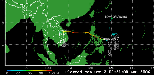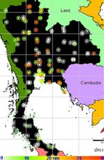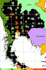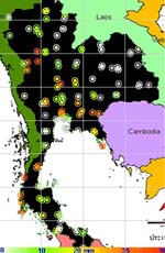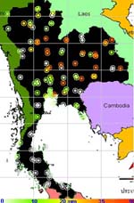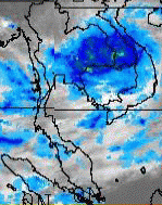 และเคลื่อนตัวเข้าสู่ประเทศไทยในแนวจังหวัดมุกดาหารและอุบลราชธานี ทำให้บริเวณดังกล่าว มีฝนตกหนักเกิดขึ้น![]() 16/09/2006 : 12am |