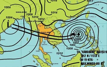 | แผนที่อากาศและเส้นทางพายุ | |||