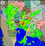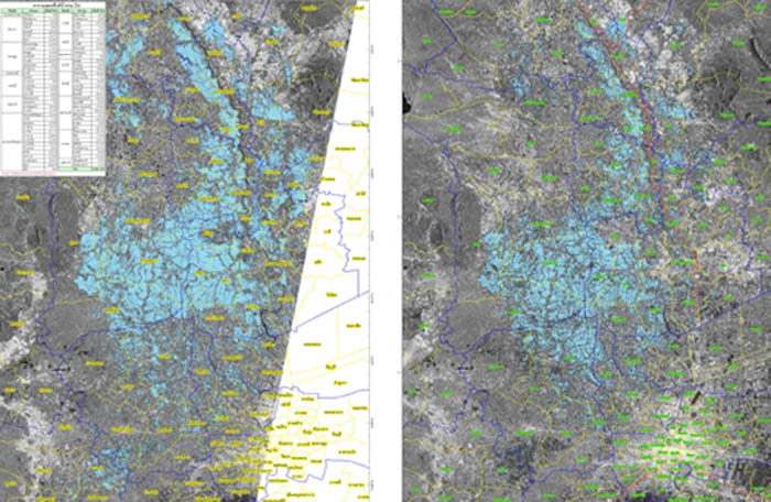 | แผนที่ภาพถ่ายดาวเทียมแสดงพื้นที่น้ำท่วม | แผนที่แสดงพื้นที่น้ำท่วมปี 2549 | |