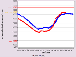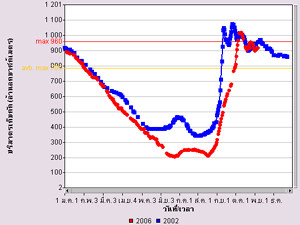 ![]() ปริมาณน้ำไหลลงเขื่อนภูมิพล |
