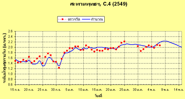 จากการคำนวณของแบบจำลองเพื่อคาดการณ์ระดับน้ำีที่สถานี