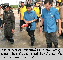 ชาวบ้านแค้นน้ำท่วม พังคันกั้น อยุธยาโกลาหล [ไทยรัฐ : 16 ต.ค. 49 ] ที่ จ.นครสวรรค์ ระดับน้ำในแม่น้ำเจ้าพระยาพบว่าสูงกว่าตัวเมืองราว 1.50 เมตร และจะเพิ่มขึ้นแต่ยังไม่แน่นอน ขึ้นๆลงๆ วัดได้ตั้งแต่ 5,740-5,795 ลบ.ม.ต่อวินาที เหลืออีก 3 ซม. ก็จะล้นสันคันปูน แต่ได้สั่งให้เสริมแนวหินคลุกให้สูงอีก 30 ซม. นอกจากนี้ ยังเสริมแนวถนนโกสีย์เหนือ เพื่อป้องกันแม่น้ำปิงที่ขณะนี้มีปริมาณสูงกว่าตัวเมืองเกือบ 1 เมตร ที่ จ.อุทัยธานี น้ำในแม่น้ำสะแกกรัง ล่าสุดมีปริมาณสูงขึ้นเอ่อล้นขยายเป็นวงกว้างเข้าท่วมสถานที่ราชการใน จ.อุทัยธานี เช่น ศาลากลางจังหวัด ศาลจังหวัด สถานีตำรวจ และจวนผู้ว่าฯ ทางเทศบาลต้องใช้เครื่องสูบน้ำเร่งระบายออก