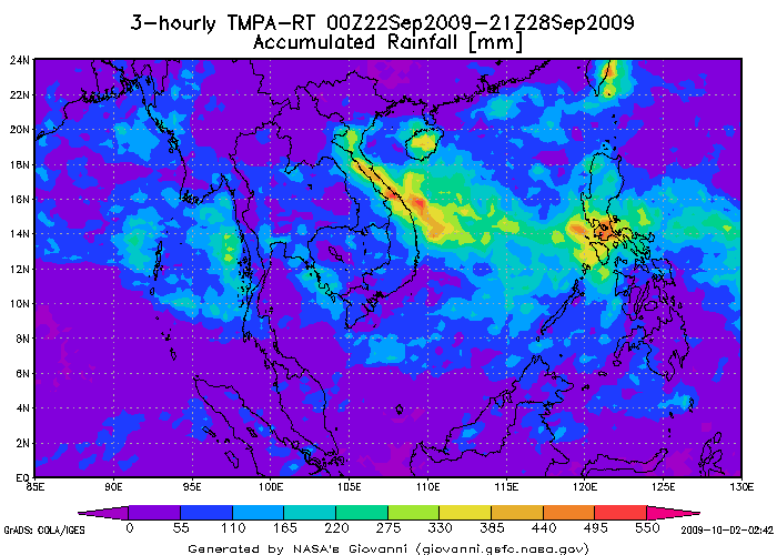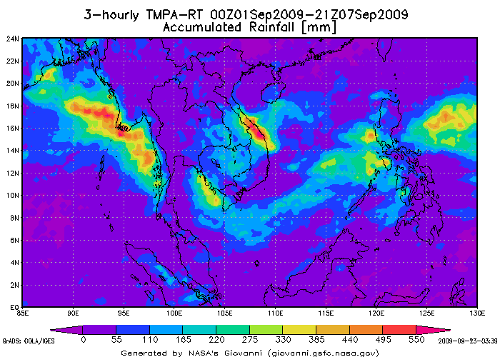 ![]() ประมาิณฝนสะสมช่วงวันที่ 1-7 กันยายน 2552 |