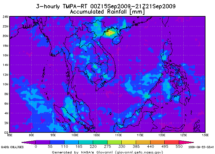 ![]() ประมาิณฝนสะสมช่วงวันที่ 15-21 กันยายน 2552 |