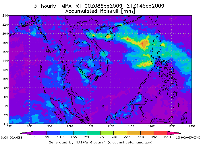 ![]() ประมาิณฝนสะสมช่วงวันที่ 8-14 กันยายน 2552 |