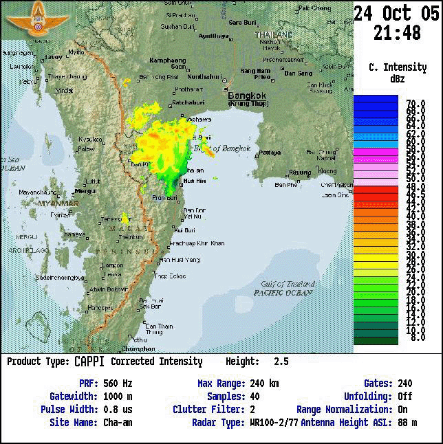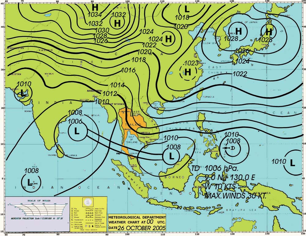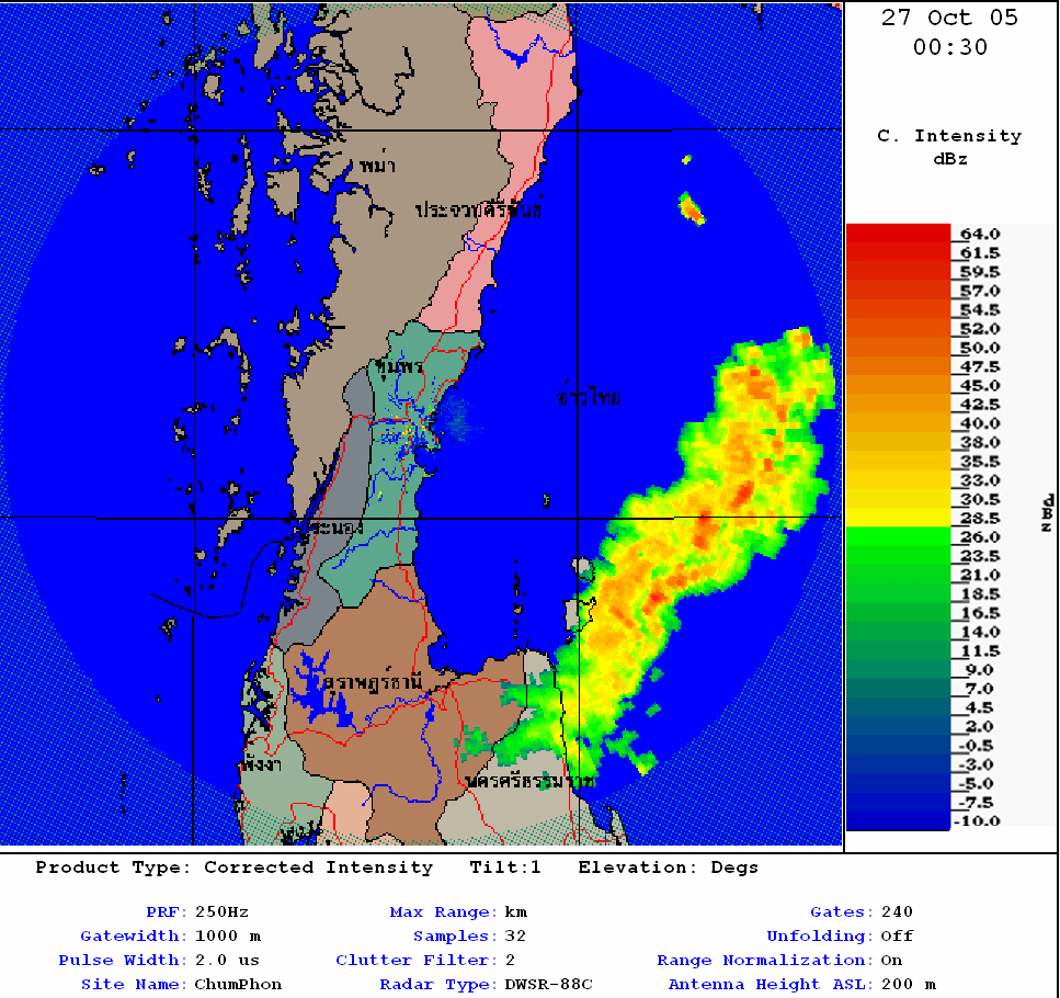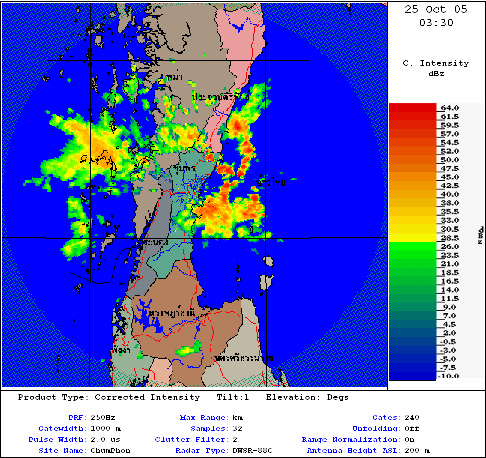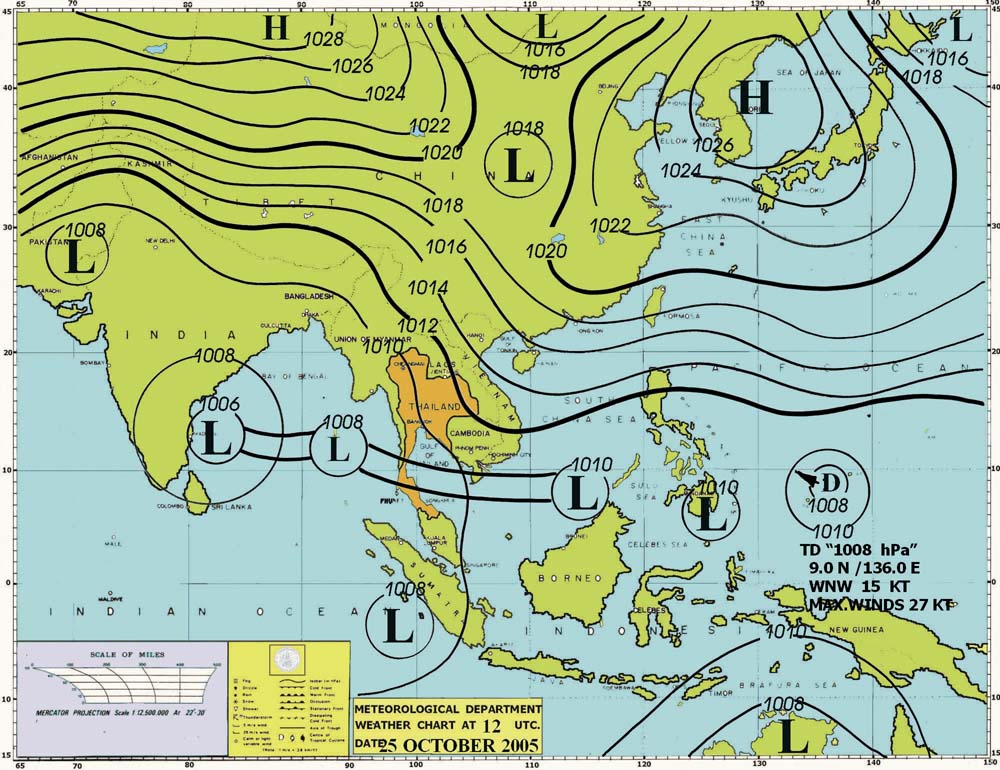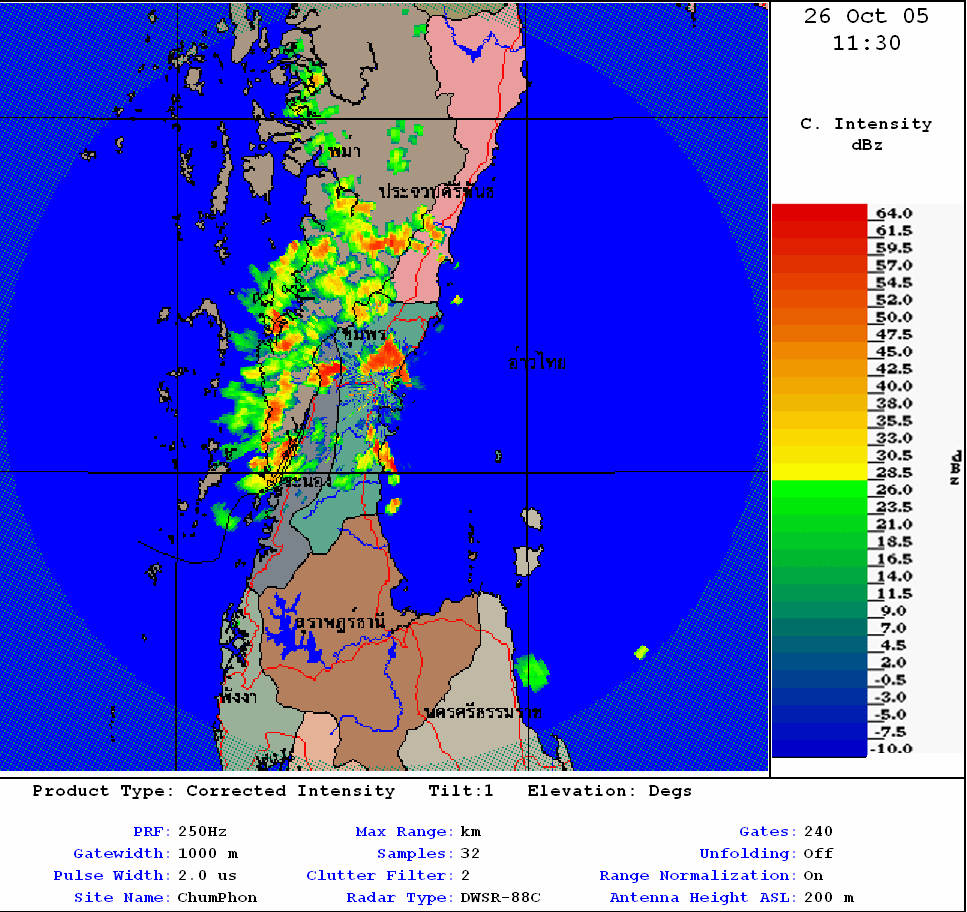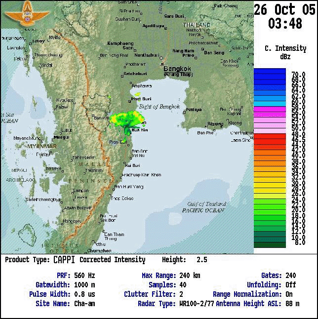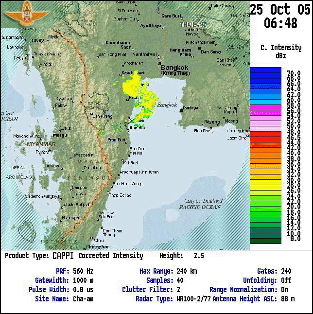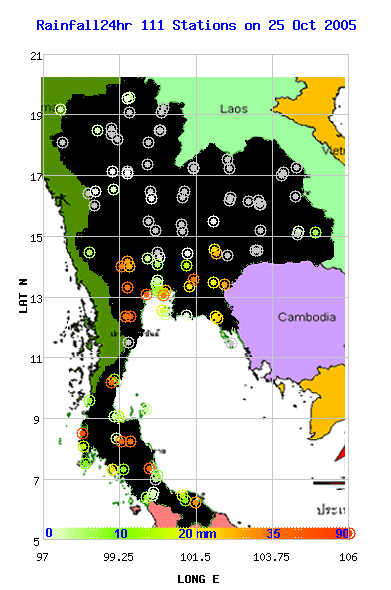 เมื่อวันที่ 24 ต.ค.กรมอุตุนิยมวิทยาออกประกาศ ฉบับที่ 20 (111/2548) เรื่อง หย่อมความกดอากาศต่ำ ระบุว่า ร่องความกดอากาศต่ำพาดจากหย่อมความกดอากาศต่ำกำลังแรงในทะเลอันดามัน เลื่อนขึ้นมาพาดผ่านภาคใต้ตอนบน ทำให้ภาคกลางตอนล่างและภาคใต้ตอนบน มีฝนตกชุกหนาแน่นกับมีฝนตกหนัก และน้ำท่วมฉับพลันในบางพื้นที่ของจ.ราชบุรี เพชรบุรี ประจวบคีรีขันธ์