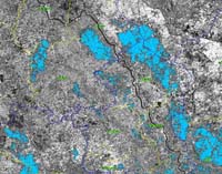 ข้อมูลภาพถ่ายดาวเทียมแสดงพื้นที่น้ำท่วมจาก GISTDA (คลิ๊กที่ภาพเพื่อแสดงภาพเต็ม)