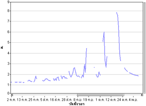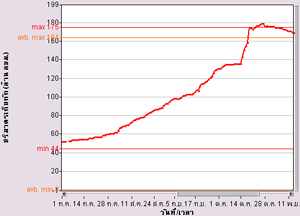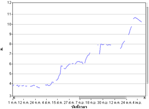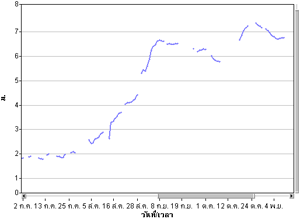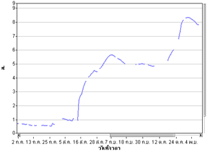 สำหรับวันนี้ ระดับน้ำมูลวัดที่สะพานเสรีประชาธิปไตยมีระดับน้ำสูง 6.87 เมตร สูงจากเมื่อวาน 19 เซนติเมตร และมีระดับน้ำล้นตลิ่งแล้วเกือบ 1 เมตร