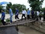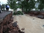 จากนั้น นายพีระศักดิ์ หินเมืองเก่า ผู้ว่าฯบุรีรัมย์ และคณะ ได้ลงพื้นที่สำรวจหมู่บ้านที่ประสบภัยน้ำท่วม ที่ บริเวณถนนสายบ้านกรวด-เฉลิมพระเกียรติ ช่วงระหว่างบ้านเขาดินใต้ หมู่ 9 ต.บ้านกรวด อ.บ้านกรวด มุ่งหน้าไปยังแหล่งท่องเที่ยวอุทยานประวัติศาสตร์พนมรุ้ง และปราสาทเมืองต่ำ ปรากฏว่า คอสะพานถูกกระแสน้ำกัดเซาะตัดขาดเสียหาย เจ้าหน้าที่ต้องนำต้นไม้ใหญ่มาวางทอดให้สามารถเดินผ่านไปมาได้ชั่วคราว ใกล้กันยังพบถนนถูกน้ำเซาะตัดขาดโดยสิ้นเชิง ประชาชนและยานพาหนะทุกชนิดไม่สามารถสัญจรผ่านไปมาได้
