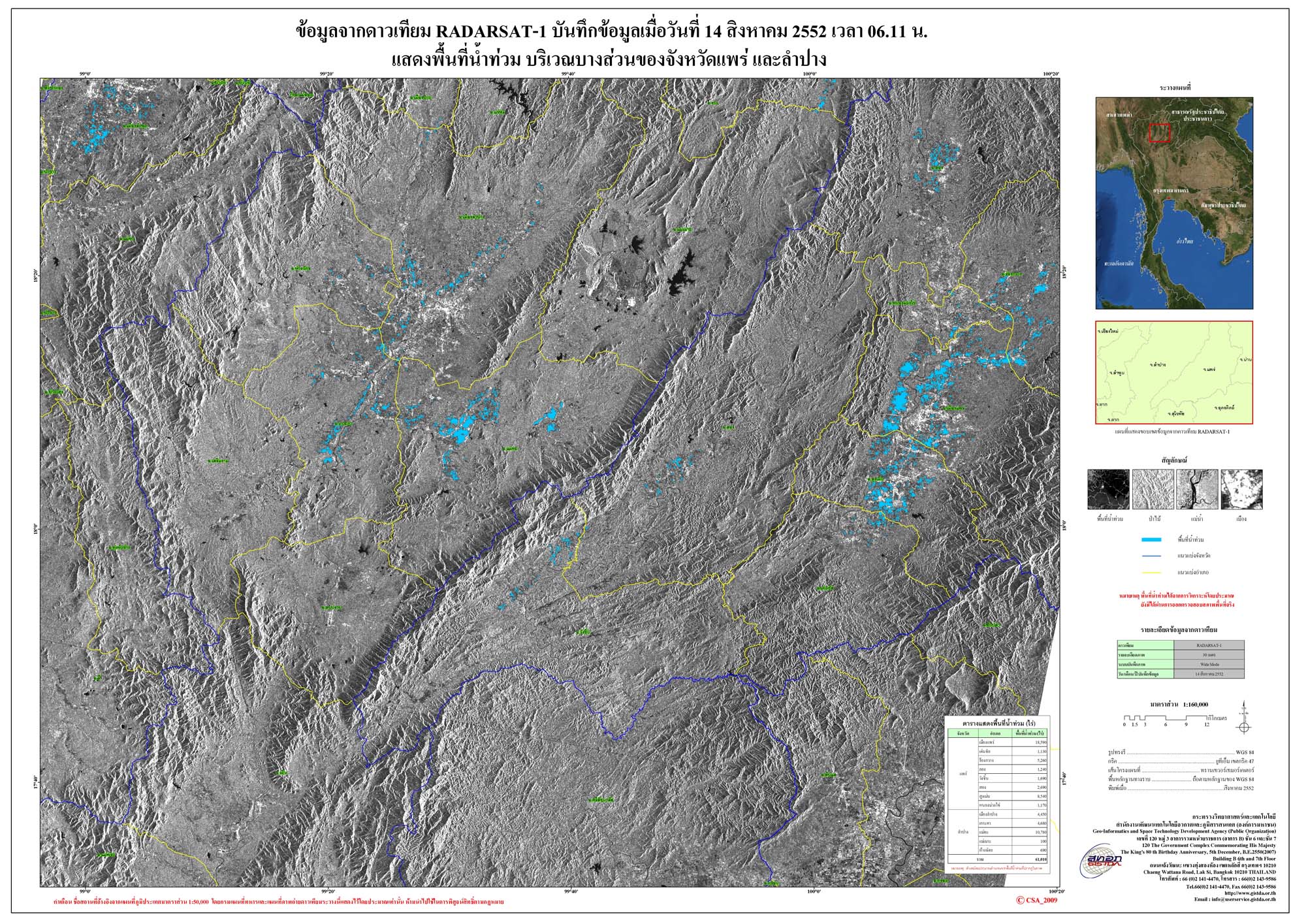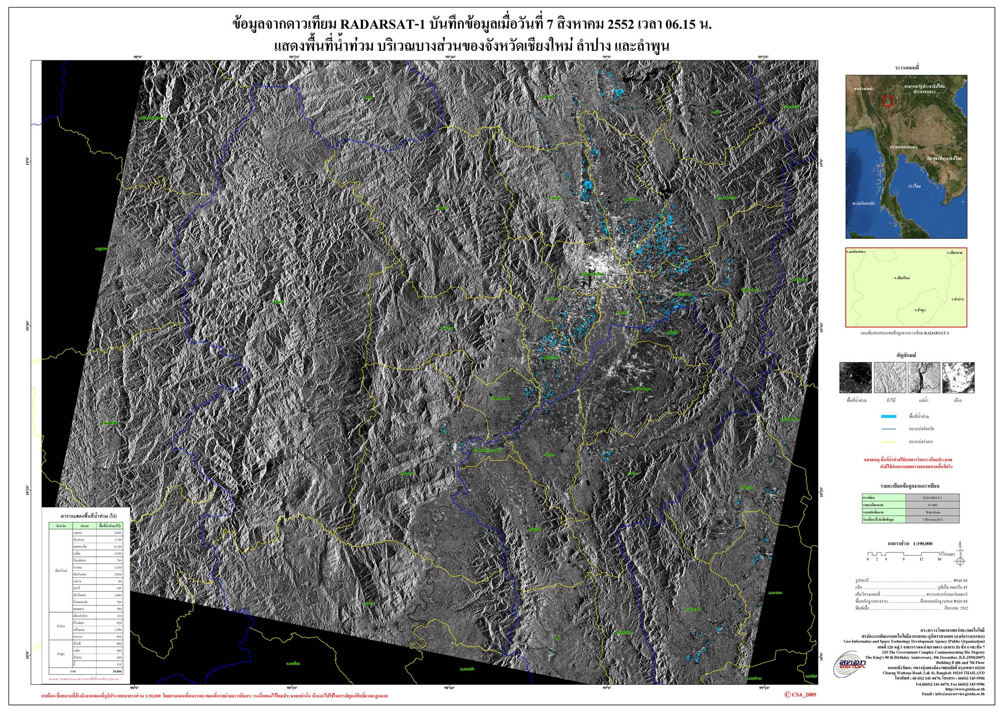 | จากภาพถ่ายดาวเทียม GOES-9 ในช่วงเดือนสิงหาคม พบว่ามีกลุ่มเมฆปกคลุมพื้นที่ภาคเหนือและภาคตะวันออกเฉียงเหนืออย่างต่อเนื่อง โดยตั้งแต่ช่วงกลางเดือนจนถึงปลายเดือนลักษณะกลุ่มเมฆค่อนข้างหนามาก ทำให้เกิดฝนตกหนักและเกิดน้ำท่วมในหลายพื้นที่ เช่น จังหวัดเชียงราย แม่ฮ่องสอน น่าน แพร่ นครพนม มุกดาหาร ร้อยเอ็ด ดูรายละเอียดเพิ่มเติม |