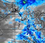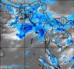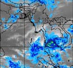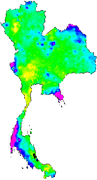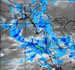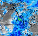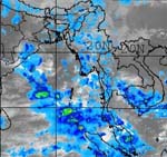 จากแผนภาพฝนสะสมของ NASA พบว่าืช่วงวันที่ 1-7 พ.ค. 50 มีกลุ่มฝนกระจุกตัวกันค่อนข้างมากบริเวณทะเลอันดามัน ด้านตะวันตกของประเทศไทย ภาคใต้ตอนบน ภาคกลาง และอ่าวไทย หลังจากนั้นกลุ่มฝนกระจุกตัวลดลงเล็กน้อย และกลับมากระจุกตัวเพิ่มขึ้นอีกครั้งเนื่องจากเกิดพายุไซโคลนในอ่าวเบงกอล ในช่วงวันที่ 11-15 พ.ค. หลังจากนั้นพายุได้อ่อนกำลังลง แต่ยังคงมีกลุ่มฝนกระจุกตัวกันในบางพื้นที่ โดยเฉพาะบริเวณภาคใต้ที่กลุ่มฝนกระจุกตัวกันค่อนข้างหนา รายละเอียดเพิ่มเติม |