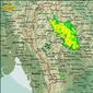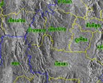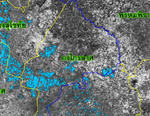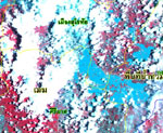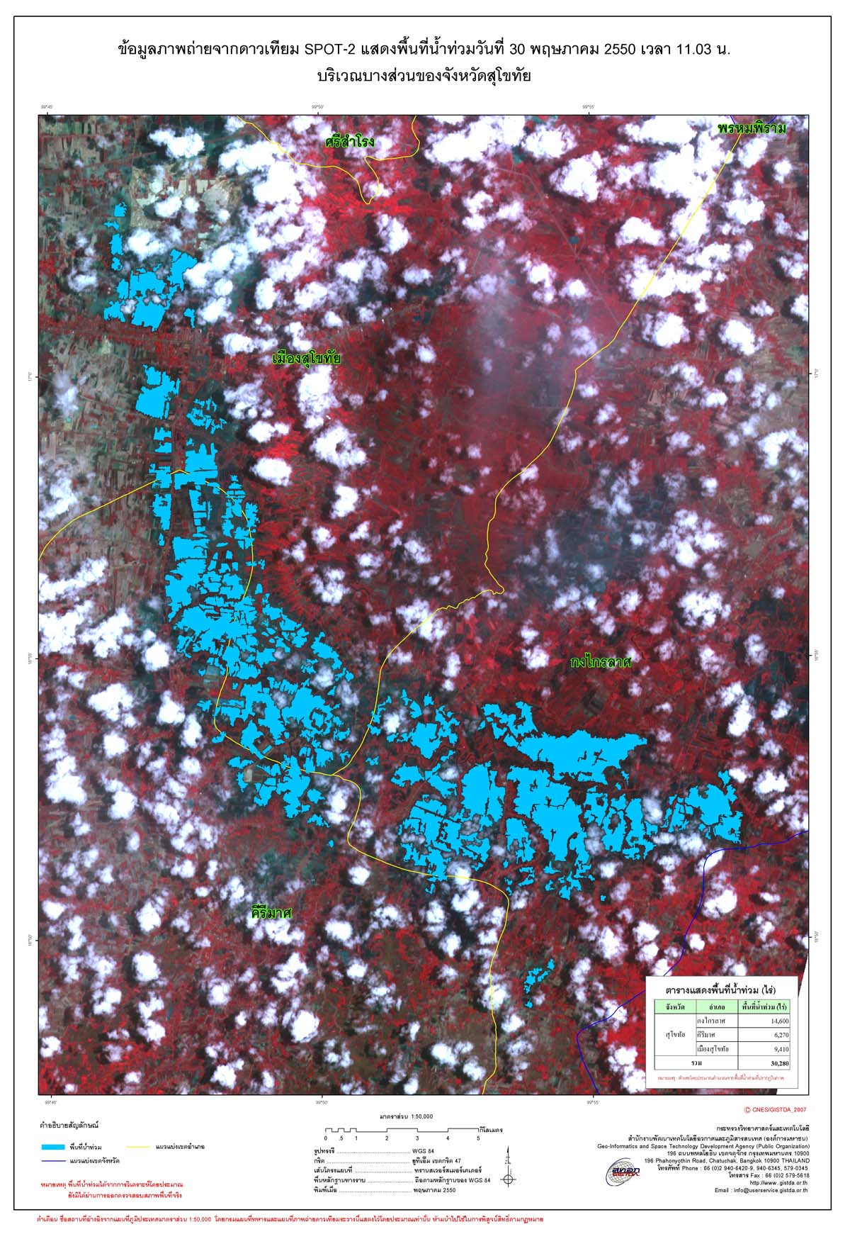 ข้อมูลจากภาพถ่ายดาวเทียม SPOT-4 แสดงพื้นที่น้ำท่วมวันที่ 30 พฤษภาคม 2550 เวลา 11.03 น. บริเวณบางส่วนของจังหวัด สุโขทัย |
