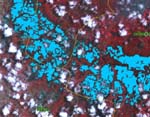 | ข้อมูลจากภาพถ่ายดาวเทียม SPOT-4 แสดงพื้นที่น้ำท่วมวันที่ 18 พฤษภาคม 2550 เวลา 11.08 น. บริเวณบางส่วนของจังหวัด นครสวรรค์ และกำแพงเพชร |
