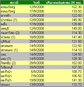 | ปริมาณฝนจากสถานีตรวจวัดกรมอุตุนิยมวิทยา |