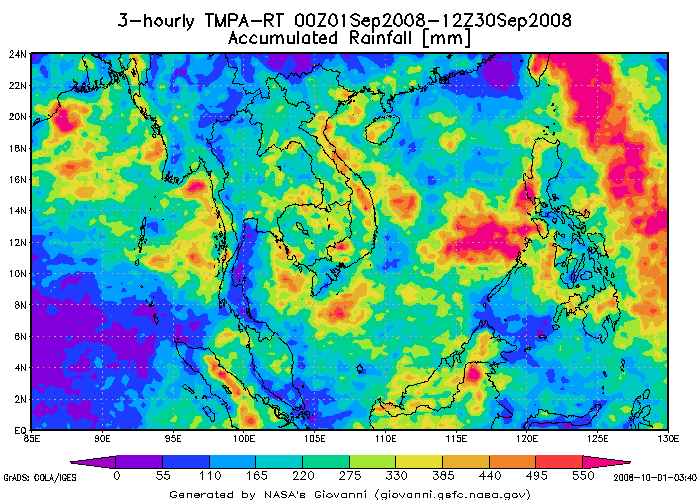 รายงานแผนภาพแสดงปริมาณฝนสะสมจาก NASA พบว่าช่วงเดือนกันยายนมีปริมาณฝนสะสมค่อนข้างมากในหลายพื้นที่