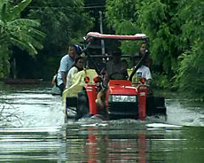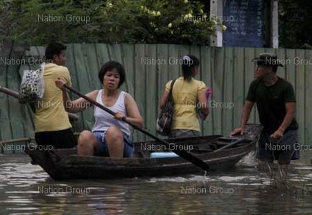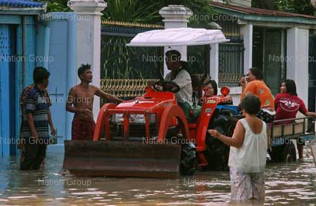 ข่าวจากหนังสือพิมพ์ -------------------------------------------------------------------------------------- สถานการณ์น้ำป่าไหลบ่าท่วมหมู่บ้านแปดริ้วยังน่าห่วง [ เนชั่น : 30 ก.ย.51 ] เวลา 07.00 น. สถานการณ์น้ำท่วมในพื้นที่ 4 หมู่บ้าน ต.ท่ากระดาน อ.สนามชัยเขต จ.ฉะเชิงเทรา ยังคงน่าเป็นห่วง หลังระดับน้ำเพิ่มสูงขึ้นอย่างต่อเนื่อง 80 ซม.-2 เมตร ขณะที่เรือท้องแบนใช้การไม่ได้ เนื่องจากสภาพพื้นที่เป็นสวนป่าสลับบ้านเรือนพักอาศัย กระแสน้ำไหลแรงเชี่ยวกราก พัดแรงจนเรือทรงตัวไม่อยู่ เนื่องจากสภาพพื้นที่คับแคบ ต้องใช้รถแทร็กเตอร์การเกษตรลากจูงข้ามเส้นทางน้ำไหล ขนคนเข้าออกจากหมู่บ้านโดยนายศุภกาณต์ ตันเจริญ นายก อบต.ท่ากระดาน กล่าวว่า ได้นำเรือท้องแบนจาก อบต. คลองตะเกรา อ.ท่าตะเกียบ มาขนของช่วยเหลือชาวบ้านหนีน้ำ และช่วยขนคนในหมู่บ้านออกไปทำงานรวมถึงนักเรียนที่ยังอยู่ระหว่างสอบก่อนปิดภาคเรียนไปโรงเรียนด้วย เนื่องจากถนนในหมู่บ้านถูกกระแสน้ำไหลบ่าตัดขาด ระดับน้ำสูงจากระดับพื้นถนน กว่า 80 ซม. แต่ก็มีปัญหาเพราะเรือท้องแบนที่เหมาะสำหรับสภาพน้ำท่วมในพื้นที่ทุ่งโล่งเตียน ไม่เหมาะที่จะใช้กับสภาพพื้นที่สวนป่า จึงต้องใช้รถไถใหญ่การเกษตรลากจูงสู้กระแสน้ำแทน โดยขณะนี้มีชาวบ้านได้รับความเดือดร้อนแล้วจำนวน กว่า 200 ครอบครัว ซึ่งทาง อบต.จะได้ทำเรื่องขอความช่วยเหลืออย่างเร่งด่วน จากองค์การบริหารส่วนจังหวัดในวันนี้ นายศุภกาณต์ กล่าว -------------------------------------------------------------------------------------- สรุปอุทกภัยในเขตพื้นที่ จ.ขอนแก่น [สำนักงานป้องกันและบรรเทาสาธารณภัย จ.ขอนแก่น : 25 ก.ย.]