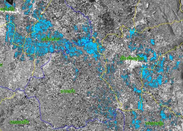 ข้อมูลจากเครือข่ายภาพเรดาร์ของกรมอุตุนิยมวิทยารัศมีครอบคลุมพื้นที่ตอนบนของประเทศ ซึ่งประกอบด้วย เรดาร์พิษณุโลก สกลนคร อุบลราชธานีและดอนเมือง (เรดาร์แต่ละตัวรัศมีครอบคลุมพื้นที่ 240 กม.) พบว่า ตั้งแต่ช่วงต้นเดือนจนถึงช่วงกลางเดือนมีฝนตกอย่างต่อเนื่อง หลังจากนั้นได้ลดปริมาณลงและปริมาณฝนได้เพิ่มขึ้นอีกครั้งในช่วงปลายเดือน ประมาณวันที่ 27-30 ก.ย. ซึ่งสอดคล้องกับภาพถ่ายดาวเทียม Goes-9 ซึ่งมีกลุ่มเมฆค่อนข้างมากในช่วงเวลาดังกล่าว เช่นกัน |