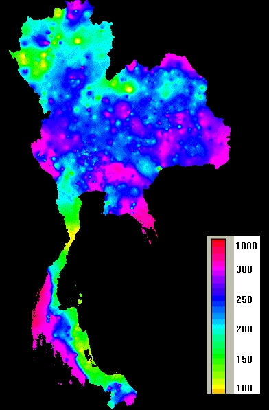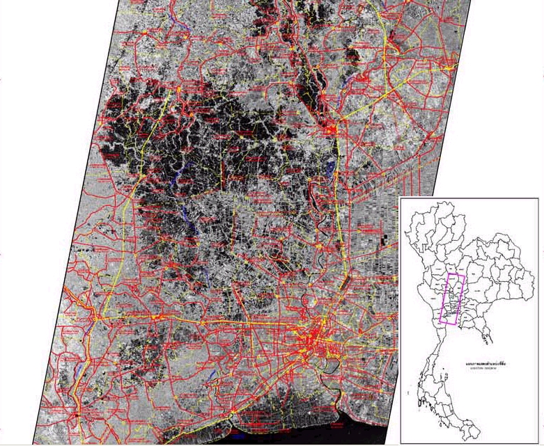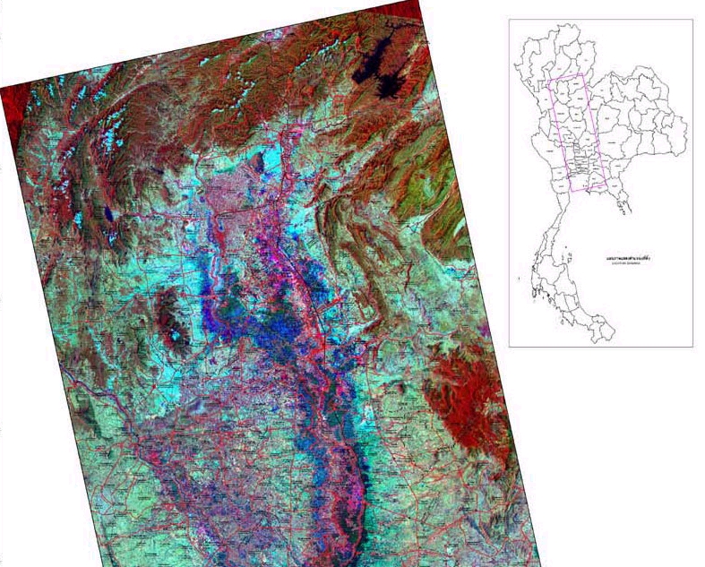 ภาพแสดงพื้นที่น้ำท่วม (ข้อมูลจากสำนักงานพัฒนาเทคโนโลยีอวกาศและภูมิสารสนเทศ)