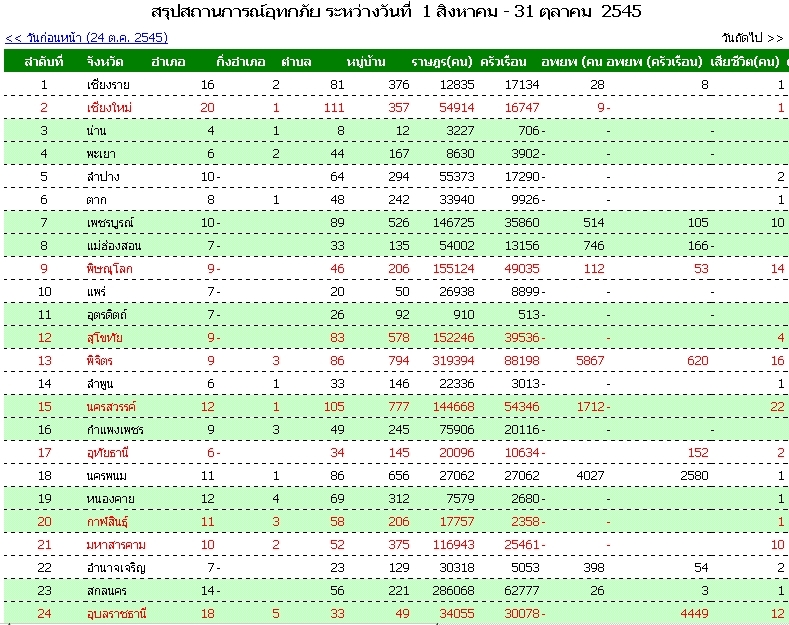 บันทึกเหตุการณ์น้ำท่วม ระหว่างวันที่ 1 กันยายน ถึง 31 ตุลาคม 2545