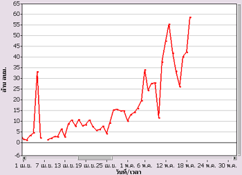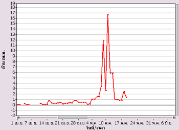 | แผนภาพแสดงปริมาณฝนสะสมรายวันจาก NASA |