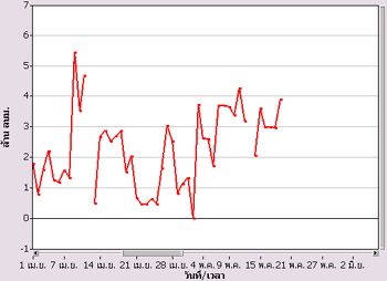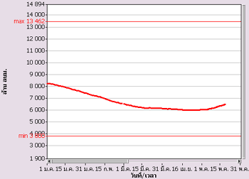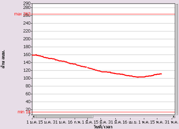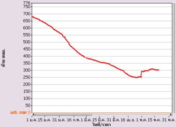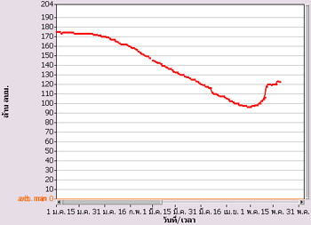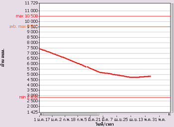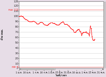 ตารางและกราฟแสดงข้อมูลน้ำรายวนในอ่างเก็บน้ำขนาดใหญ่ |