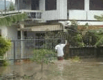 บางบ้านที่เพิ่งทำรั้วบ้านขึ้นมาใหม่ ก็ต้องจำทนยอมรับสภาพ การพังทลาย ที่เกิดจากกระแสน้ำที่ไหลเข้ามาท่วมอย่างรวดเร็ว