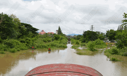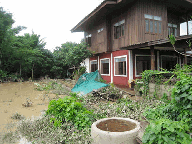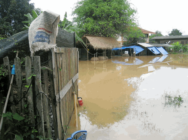 บ้านที่ติดกับแม่น้ำ ระดับน้ำก็ยังไม่ลดลง ส่วนถนนหนทางต่างๆ รถราก็ไม่สามารถเดินทางเข้าไปถึงได้ ต้องใช้การเดินเท้าไปเท่านั้น