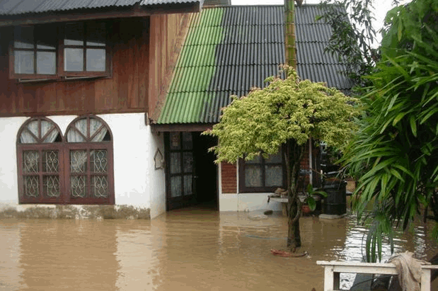 รายงานข่าวจากจังหวัดลำปาง แจ้งว่า วันนี้ (9 พ.ค.) จากฝนยังคงตกต่อเนื่องตลอดทั้งวัน นอกจากจะทำให้น้ำทะลักท่วมถนนหลายสายที่น้ำระบายไม่ทันแล้ว ในชุมชนสนามบิน ตำบลพระบาท อำเภอเมือง จังหวัดลำปาง ที่บ้านของนายพลเอก อนันตสุข ซึ่งเป็นบ้านปูนสองชั้น ในเขตชุมชน สนามบิน ต.พระบาท อ.เมือง จ.ลำปาง น้ำได้เอ่อไหลทะลักเข้าท่วมพร้อมกับบ้านหลังอื่นๆ อีกกว่า 10 หลัง โดยบางจุดมีระดับสูงถึงระดับเอว หรือท่วมสูงกว่า 1 เมตร นอกจากนี้บางแห่งเป็นร้านรับซื้อของเก่าน้ำได้ทะลักเข้าท่วมส่งผลให้ของที่ เก็บไว้จำนวนมากลอยน้ำออกไปและกระจายเกลื่อนไปทั่วบริเวณ