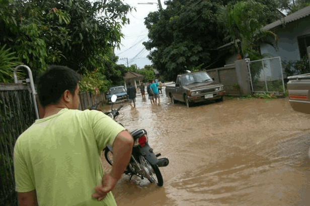 ลำปาง - ฝนตกตลอดทั้งวันทำให้น้ำไหลทะลักเข้าท่วมบ้านเรือนของประชาชนในเขตเทศบาลนครขยายวงกว้างขึ้นเรื่อยๆ บางแห่งระดับน้ำท่วมสูงถึง 1 เมตร
