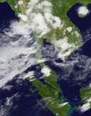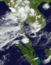 จากภาพถ่ายดาวเทียม GOES-9 พบว่าช่วงวันที่ 9-10 พ.ค. มีกลุ่มเมฆปกคลุมบริเวณภาคเหนือตอนบนอย่างต่อเนื่อง ส่งผลให้เกิดฝนตกในพื้นที่ดังกล่าว โดยเฉพาะช่วงวันที่ 9 พ.ค. ที่กลุ่มเมฆค่อนข้างหนา ส่งผลให้มีปริมาณฝนค่อนข้างมาก