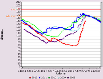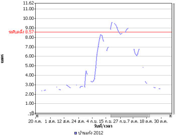![]() (Kgt.12) บ้านแก้ง อ.เมือง จ.สระแก้ว ระดับน้ำสูงสุด 9.62 ม. วันที่ 20 ก.ย. 55 |