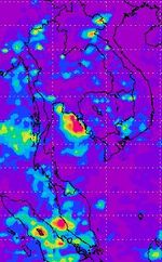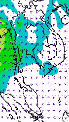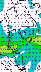 | แผนที่อากาศระดับความสูง 1.5 ก.ม. โดย สถาบันสารสนเทศทรัพยากรน้ำและการเกษตร |