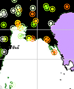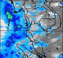 วันที่ 21 กรกฎาคม 2552 ในพื้นที่จังหวัดระยอง ตราด จันทบุรี มีปริมาณฝนค่อนข้างมาก ในช่วงเวลา 10:00GMT - 16:00GMT |