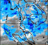 วันที่ 22 กรกฎาคม 2552 ในพื้นที่จังหวัดระยอง ตราด จันทบุรี มีปริมาณฝนค่อนข้างมาก ในช่วงเวลา 12:00GMT - 18:00GMT |