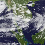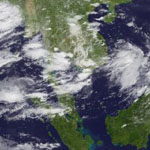 จากภาพถ่ายดาวเทียม GOES-9 พบว่าในช่วงวันที่ 21-22 กรกฎาคม 2552 มีกลุ่มเมฆค่อนข้างหนาปกคลุมบริเวณภาคตะวันออกของไทย ทำให้เกิดฝนตกหนักและน้ำท่วมในพื้นที่จังหวัด ระยอง จันทบุรี และตราด ดูรายละเอียดเพิ่มเติม |