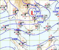 | จากภาพถ่ายดาวเทียม GOES-9 พบว่าบริเวณพื้นที่ภาคใต้มีกลุ่มเมฆค่อนข้างหนาตั้งแต่วันที่ 8 ก.ค. เป็นต้นมา จนถึงวันที่ 11 ก.ค. และ 12 ก.ค. ที่มีกลุ่มเมฆหนาปกคลุมติดต่อกันเป็นระยะเวลานาน ซึ่งทำให้ฝนตกหนักและเกิดน้ำท่วมในพื้นที่จังหวัดพังงา ตรัง สตูล และ ระนอง ดูรายละเอียดเพิ่มเติม |